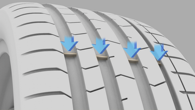 Tires fitted as original equipment have tread wear indicators molded into the tread pattern.