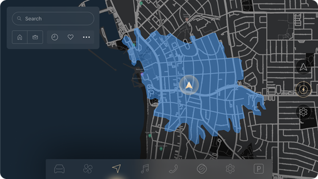 The Lucid Navigation App is integrated with your vehicle, providing the best routes based on