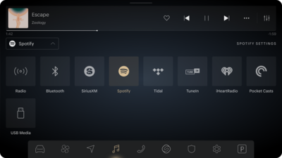 To view more content and use additional browsing options, tap on the Pilot Panel. To switch between third-party media apps, select the intended app from the drop-down menu at the top of the Pilot Panel.