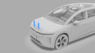 In the case of an unlatched hood, the red Door Open warning indicator will appear on the Clearview Cockpit. If this occurs, Lucid recommends that you stop the vehicle in a safe location and place the vehicle in P (Park), then check to see if the hood is correctly closed.