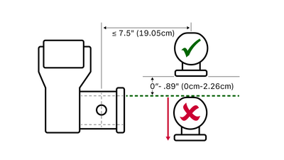 The hitch receiver supports a ball mount with a rise between 0” (0 cm) and 0.89” (2.2 cm)