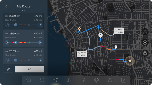 Note: The Lucid Navigation App calculates predicted energy usage along the route. For more