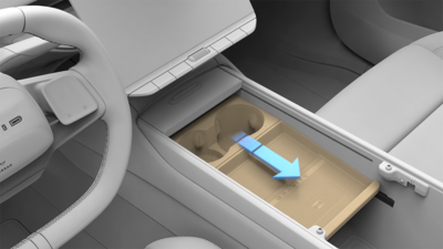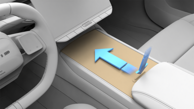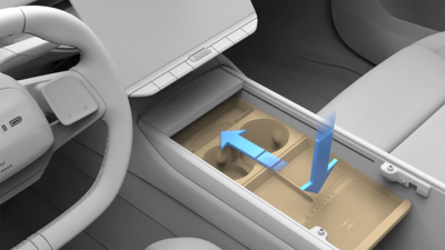 With the sun visor in its stowed position, slide the battery holder towards the front of the vehicle.