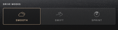 SMOOTH mode configures the vehicle for comfortable, effortless, highly-efficient driving. SMOOTH mode allows the vehicle to achieve maximum range while optimizing steering, braking, and suspension systems for comfort and a smooth powertrain response.
