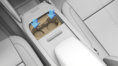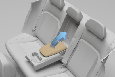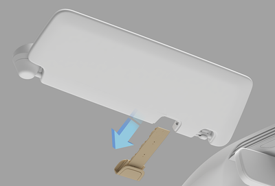 With the sun visor in its stowed position, slide the battery holder towards the front of the vehicle.